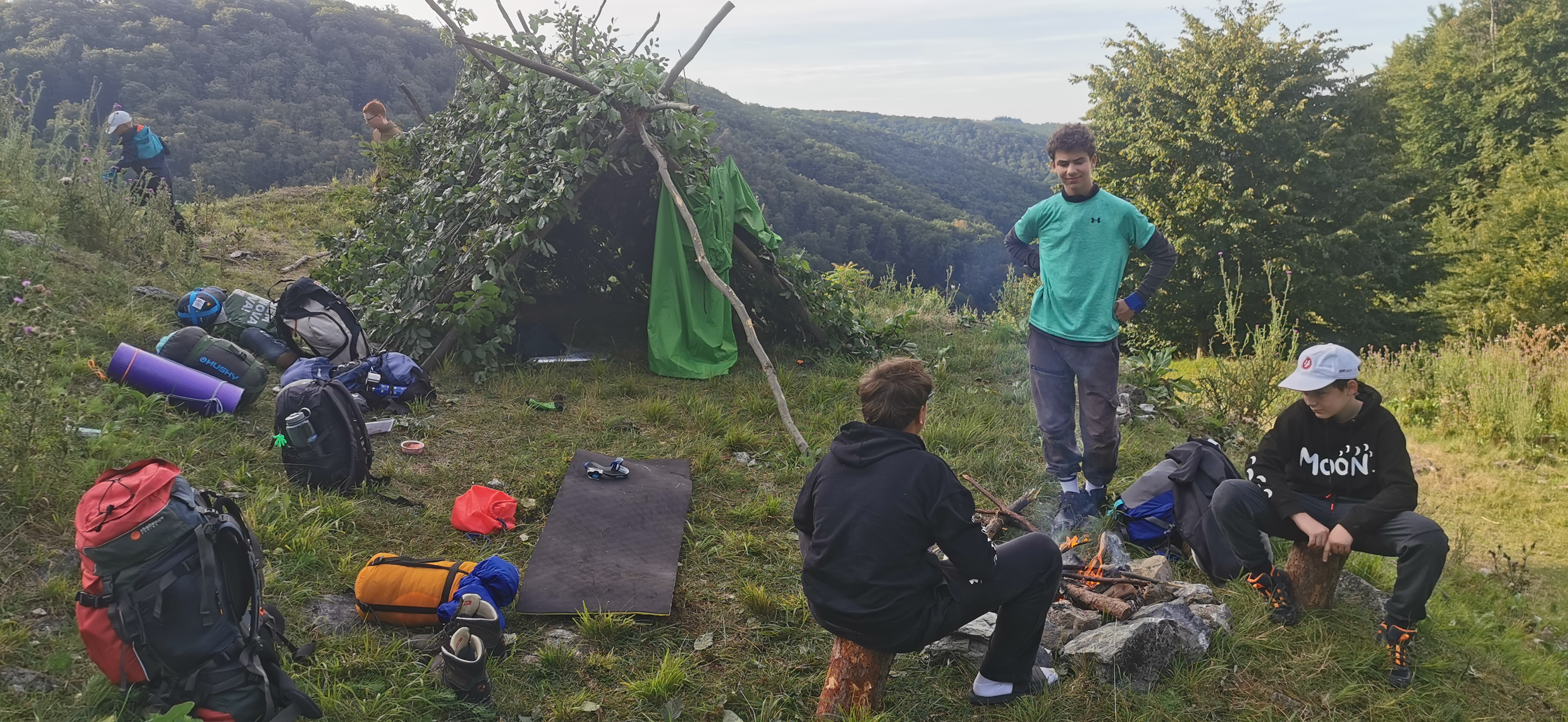 Na okraji lese, ktorému panuje tajomná Galadriel si skupina postavila svoje prístrešky z toho čo poskytla príroda.